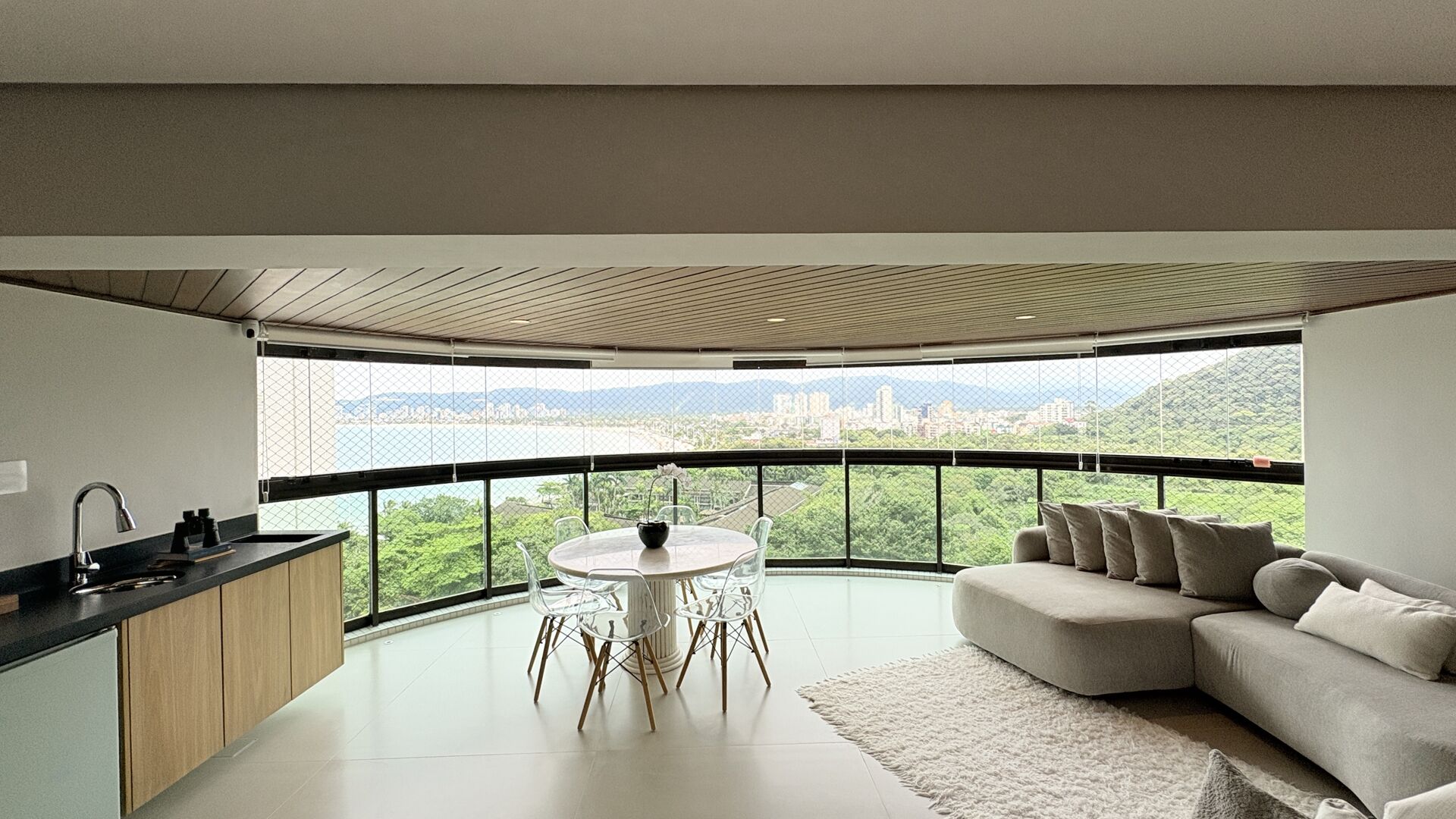 Imagine acordar com o som suave das ondas e o sol da manhã invadindo um terraço privativo com uma vista panorâmica de tirar o fôlego para o mar da Praia da Enseada. Este não é apenas um apartamento; é um refúgio de luxo e exclusividade, meticulosamente reformado para atender ao mais alto padrão de exigência.