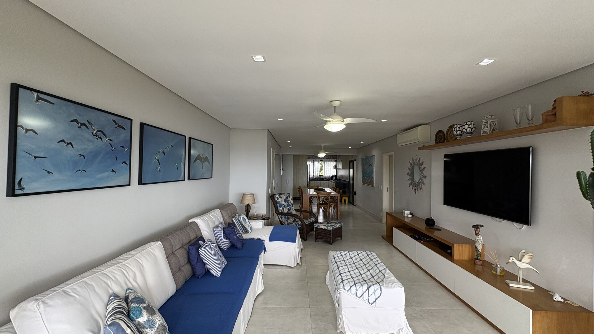 Sala integrada à varanda com ventilação cruzada